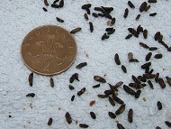 Another sign is tiny black “Rice-shaped” droppings in your property, especially in the loft, kitchen or storage area.